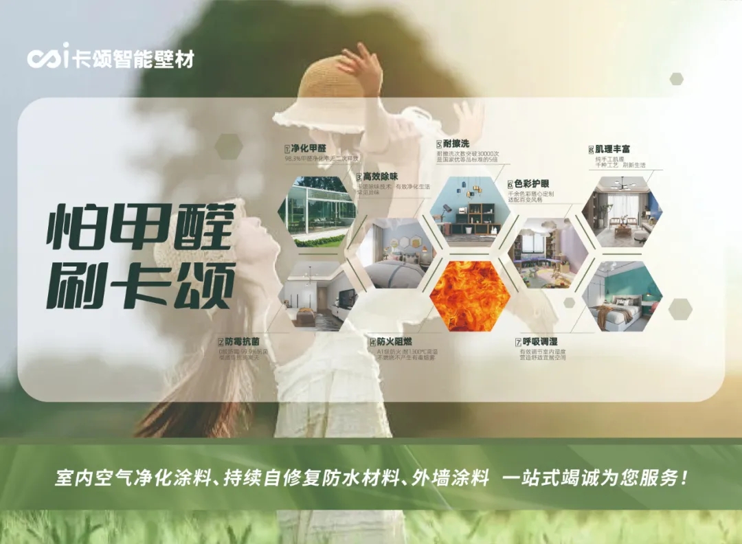 如今,人们对室内环境健康安全与品质的追求愈发强烈。在徐海教授的领衔下,卡颂智能壁材的技术创新,不仅弥补了涂料行业在抗病毒抗菌领域的短板,更让涂料实现了从 “装饰性材料” 到 “功能性健康材料” 的跨越。
