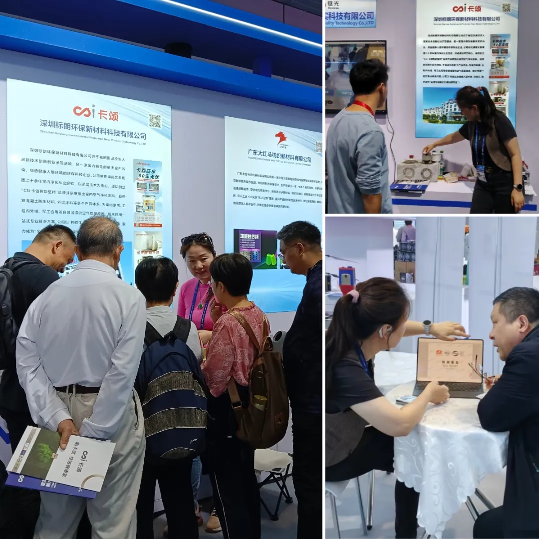 卡颂内墙涂料系列以 “卡颂技术”为核心,构建起室内空气净化的 “第一道防线”。该技术已成功实现 “吸附 + 分解” 双重功能:可主动捕捉甲醛、苯等有害气体,再通过负载的混晶二氧化钛将其彻底分解为二氧化碳和水,经权威检测甲醛净化率最高可达 98.3%!同时,产品还具备 A1 级防火、防霉抗菌、耐擦洗等性能,无论是高端住宅,还是对环境要求严苛的学校、医院都能完美适配。在展会现场,通过现场实验让参展观众切身感受到了卡颂产品的独特魅力!
