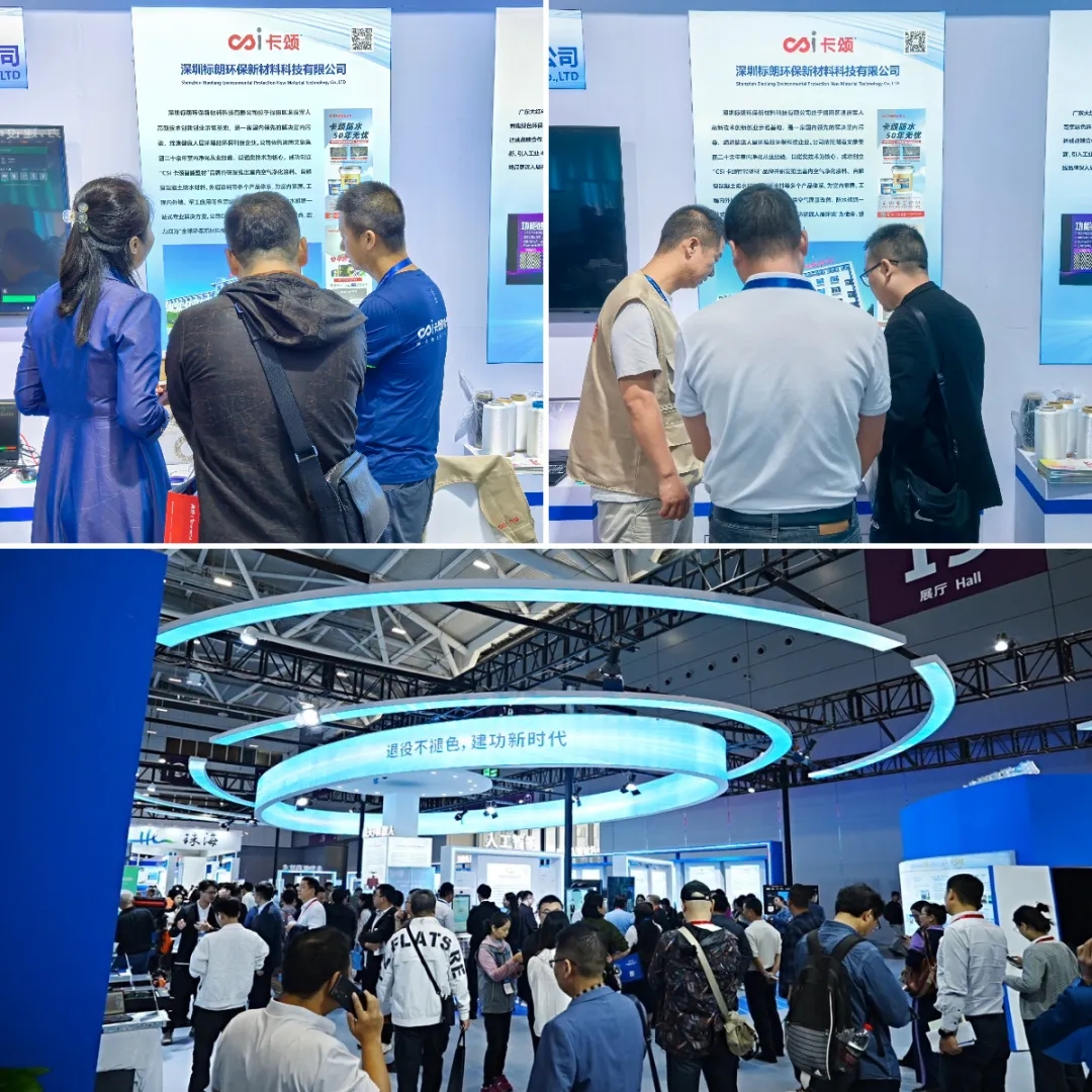而另一大 “明星产品” 卡颂混凝土自修复防水材料,则彻底颠覆了传统防水的 “被动防护” 模式。当混凝土出现 0.6mm 以下的细微裂缝时,材料中的活性成分会迅速渗透至裂缝深处,与周围物质发生化学反应生成不溶性晶体,如同为建筑结构注入 “自愈因子”,实现自主、持续修复。相较于传统防水材料,卡颂自修复防水材料不仅将防水寿命提升至 5-10 倍,更能缩短施工周期 90% 以上,节约综合成本 50%,从根本上解决了建筑渗漏、维护成本高的行业难题。通过防水模型现场演示,观众清晰看到渗透结晶体的生长情况,不少来自基建、地产领域的客户表达出合作意向,他们表示 “这种自修复技术能极大降低后期维护压力,对我们交通隧道、水利水电等基建项目来说太实用了!”
