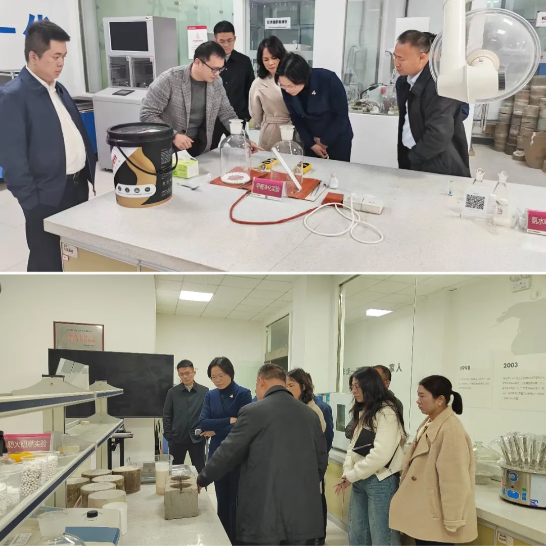 随后,考察团前往卡颂企业园区,现场观摩产品体验实验:从屋面防水涂层的抗渗测试,到内墙环保涂料除醛净味效果演示,考察团直观了解了产品功能细节;同时查看了生产流程与品控体系,对企业的产业化能力形成了具象认知。