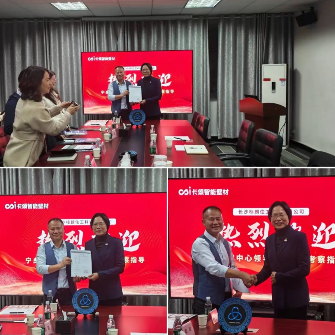 当日下午,宁乡公建中心主任刘海波率核心团队,先后走访卡颂智能壁材中南大学联合实验室、企业园区,对企业技术实力与产品功能展开全面调研。