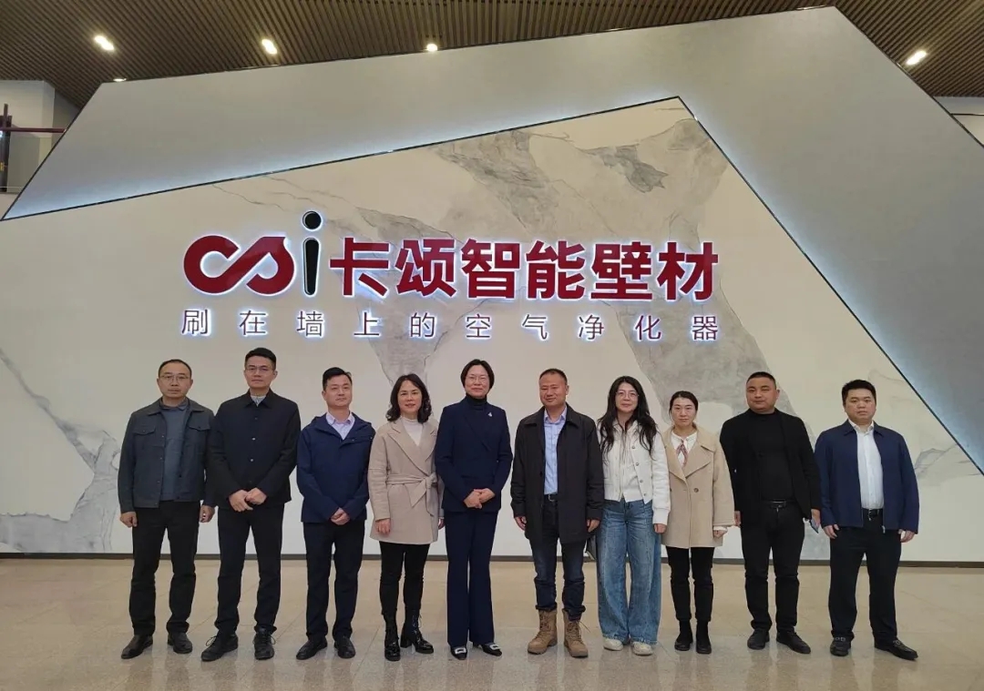2025 年 12 月 10 日,宁乡公建中心主任刘海波率副主任周喜良、刘舵等核心团队,莅临卡颂智能壁材考察指导,卡颂董事长曾广斌、卡颂技术发明人、中南大学徐海教授携公司核心管理团队全程陪同接待。本次考察以 “技术落地与公建场景适配” 为核心,为政企深化绿色建材合作、共推本地公建项目品质升级筑牢了坚实基础。