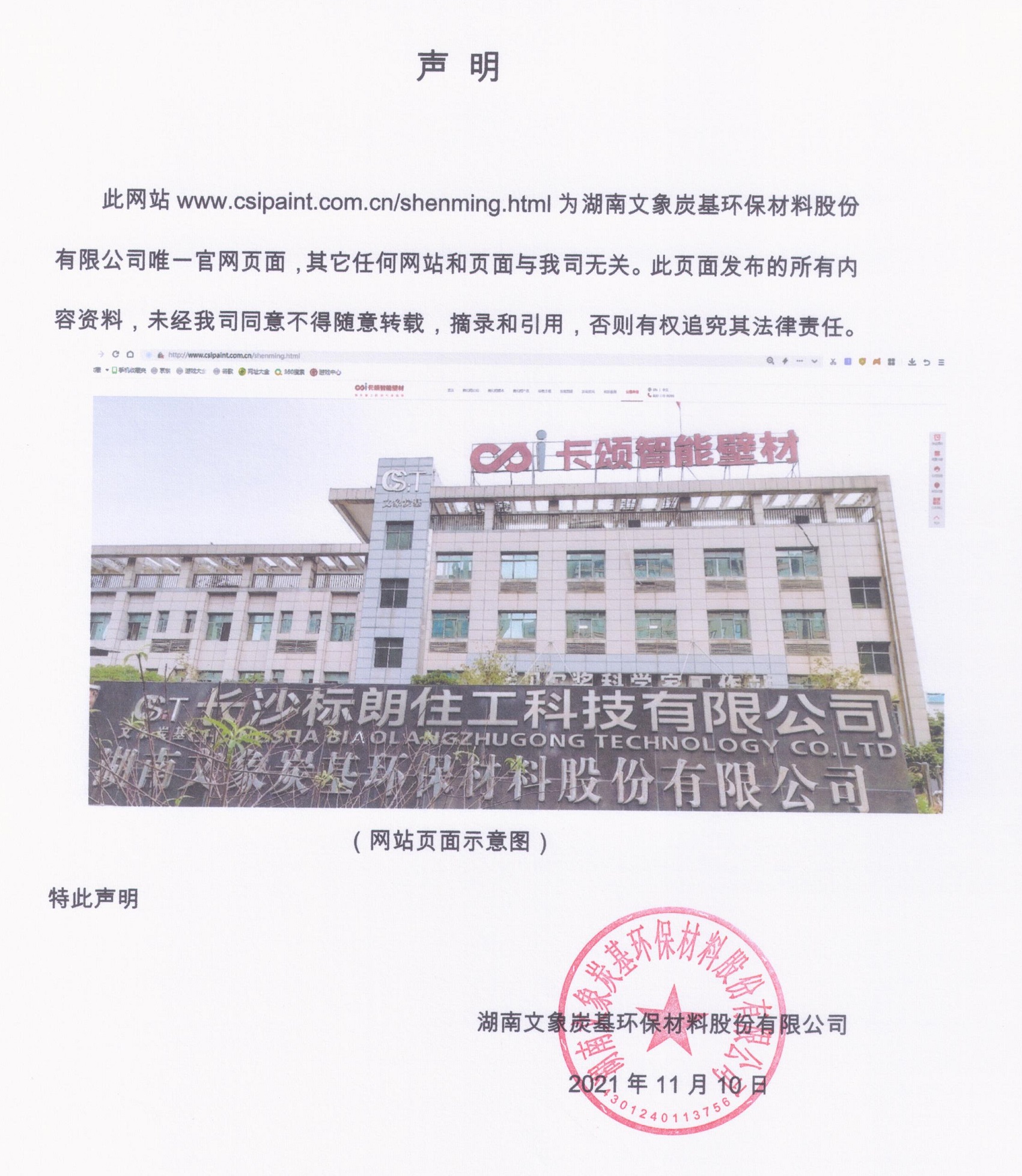 Announcement statement湖南文象炭基环保材料股份有限公司(以下简称“文象炭基”)成立于2010年,是集研发、生产、销售功能型室内装饰材料的企业。