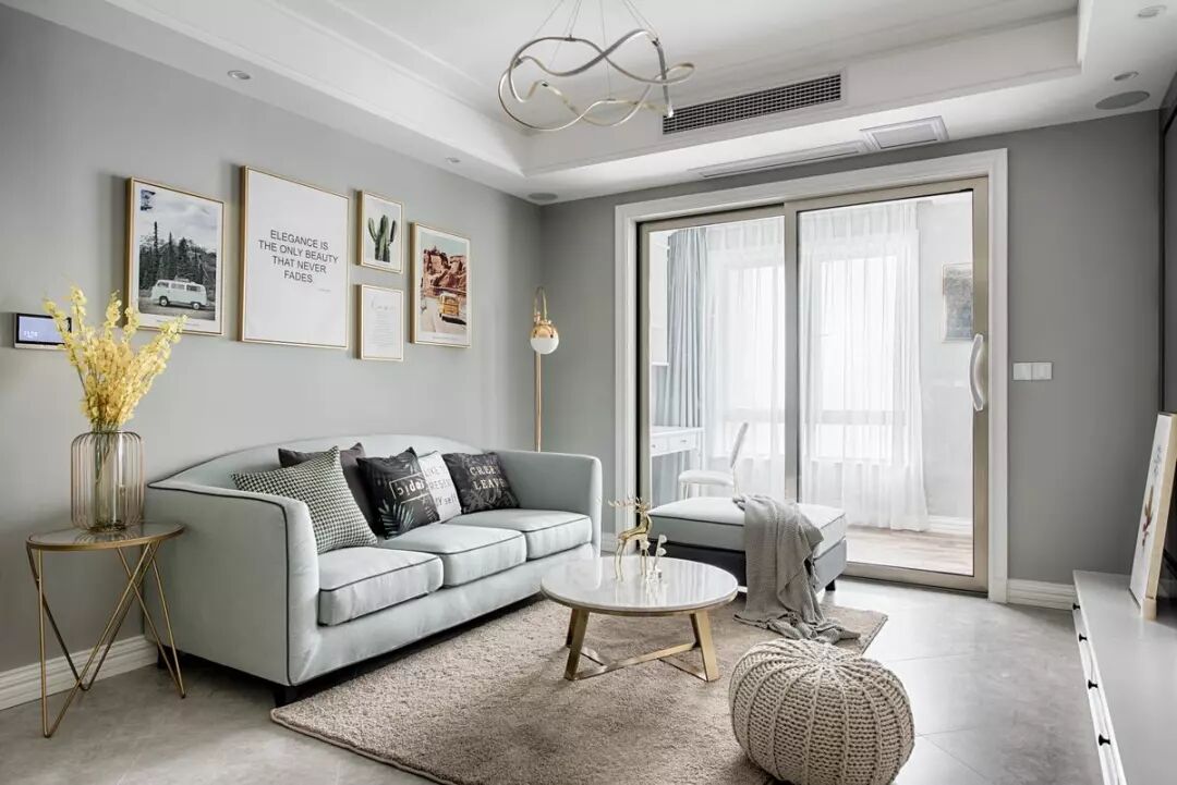 ▲ 使用卡颂智能壁材营造出浅灰基调的客厅,简单到位的家具布置提供了相对宽松的空间,结合带有金属质感的小家具,整体呈现优雅自在的姿态。