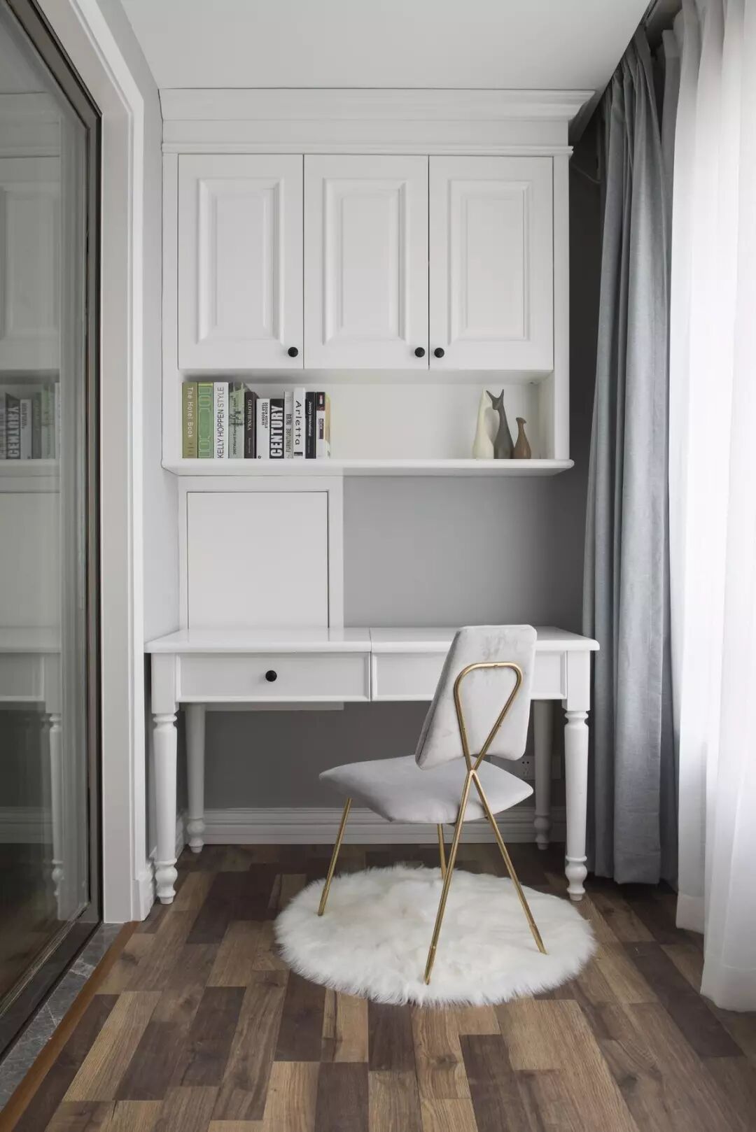▲ 客厅阳台封了起来打造成书房,这一侧是白色的书房与书架空间。