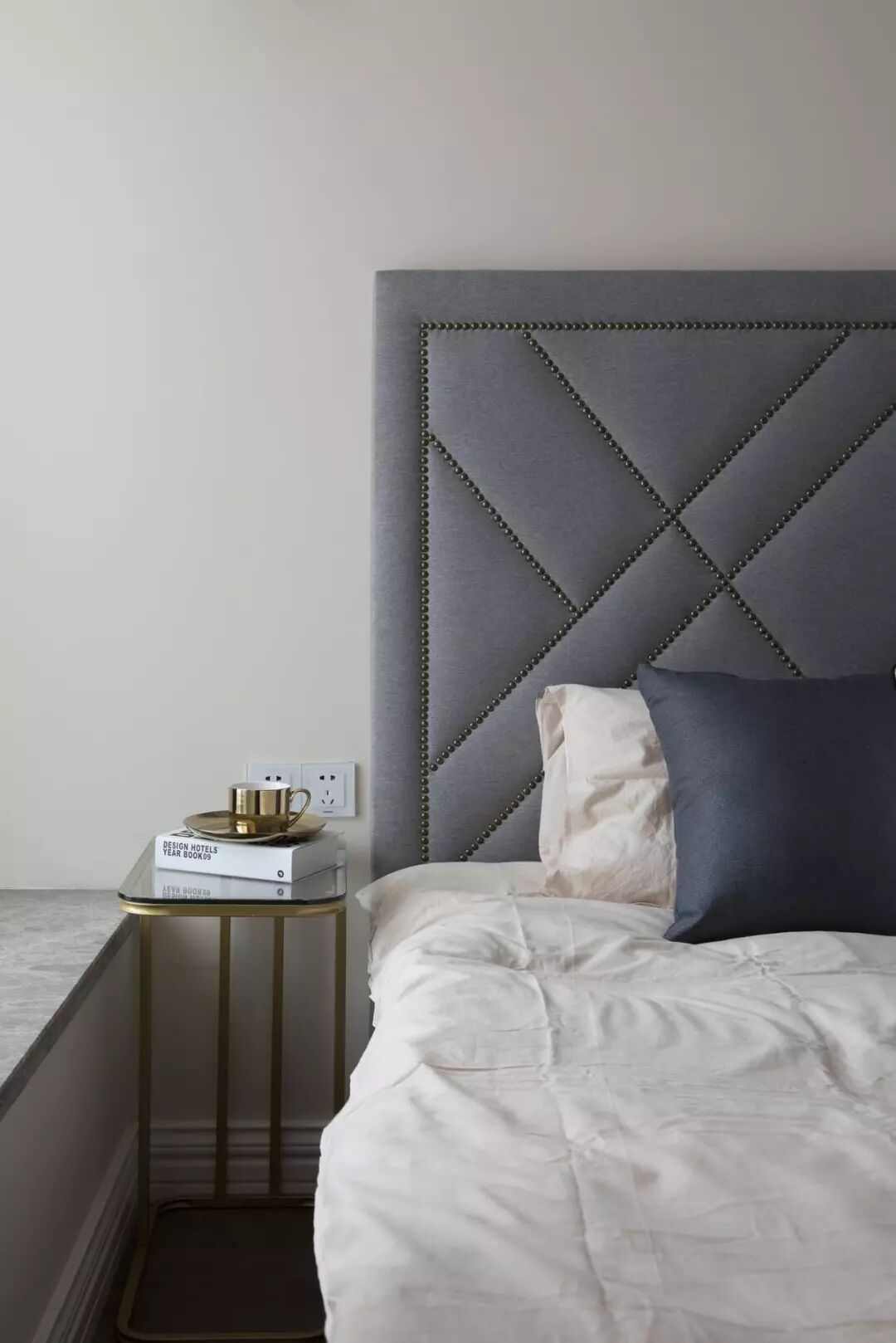 ▲ 简约优雅的卧室空间,质感精致的铜艺床头边桌,配合移门的衣柜,紧凑的空间也满载低调温馨。